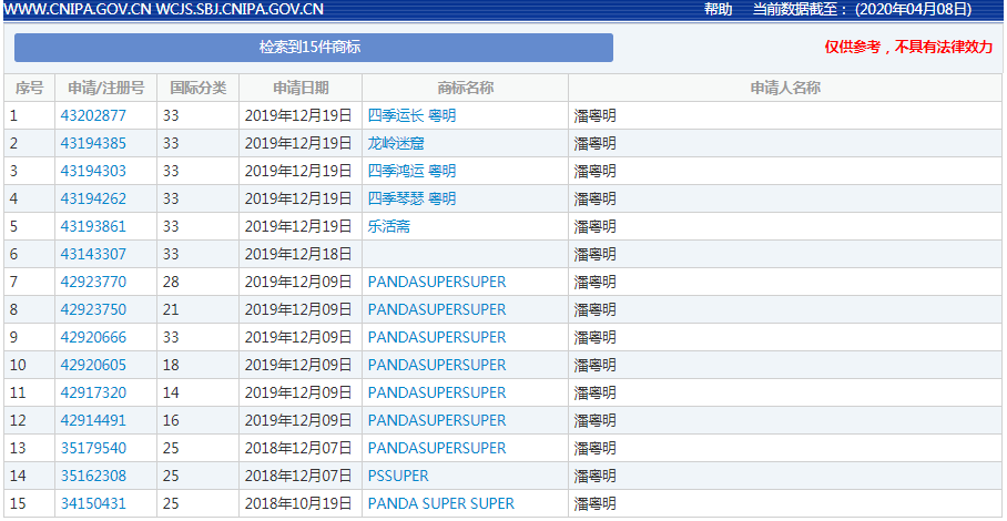 潘粤明总共申请了15件商标,只有一件“龙岭迷窟”商标,为何单单申请在“酒”上?