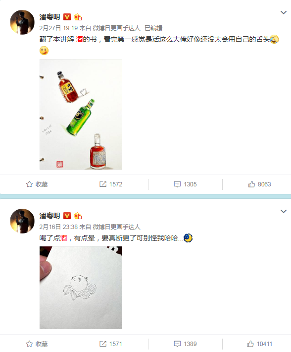 因为,潘粤明爱喝酒,在演员行业里出了名的爱喝酒……