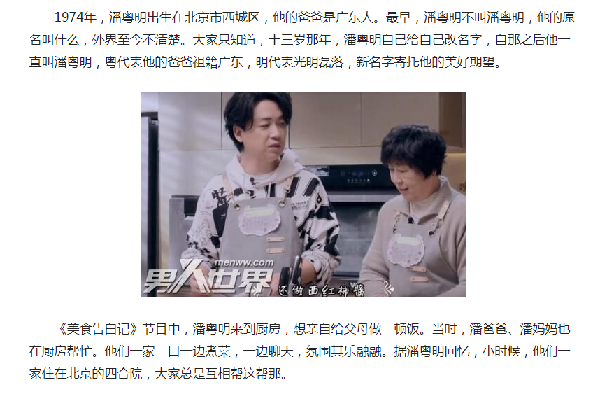在某综艺中,潘粤明提到,他出生在北京市西城区,住的是四合院,这就对上了。